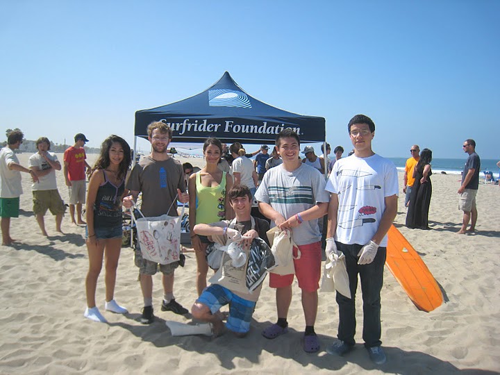 By invitation of Sara Bayles, Team Marine attended a beach cleanup at Santa Monica's lifeguard tower 26 in honor of International Surfing Day, on June 20th, 2010. Close to 40 others accompanied Team Marine in the cleanup, collecting 71.7 pounds of trash from the seemingly clean Santa Monica Beach spot. All that attended were entered into raffles for surfboard demos, shirts, and other prizes, and were provided with a great breakfast of pastries, bagels, and drinks. Participants also competed for prizes for oddest object collected, heaviest object collected, most trash collected, etc. It seemed that Kou won most of them, collecting the most and finding a candle in the shape of a naked woman which was voted the oddest object of the day. We want to give a big thanks to Sara Bayles and Mike Takahashi for organizing, as well to the sponsors of the cleanup including Surfrider, Arbor, and Aqua Surf School.